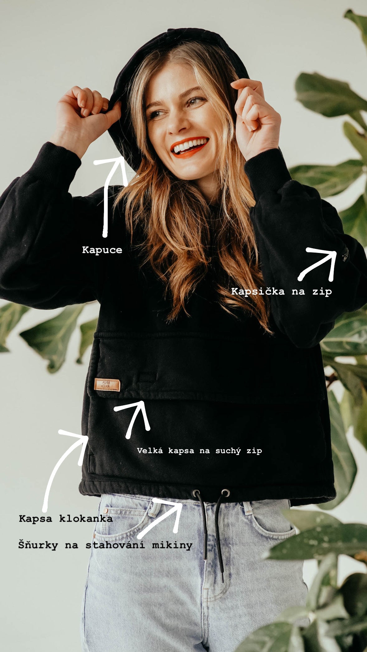 🪪Velká kapsa na břiše, která poskytuje dostatek prostoru pro pas, mobil a další nezbytnosti, které chceš mít vždy po ruce.
