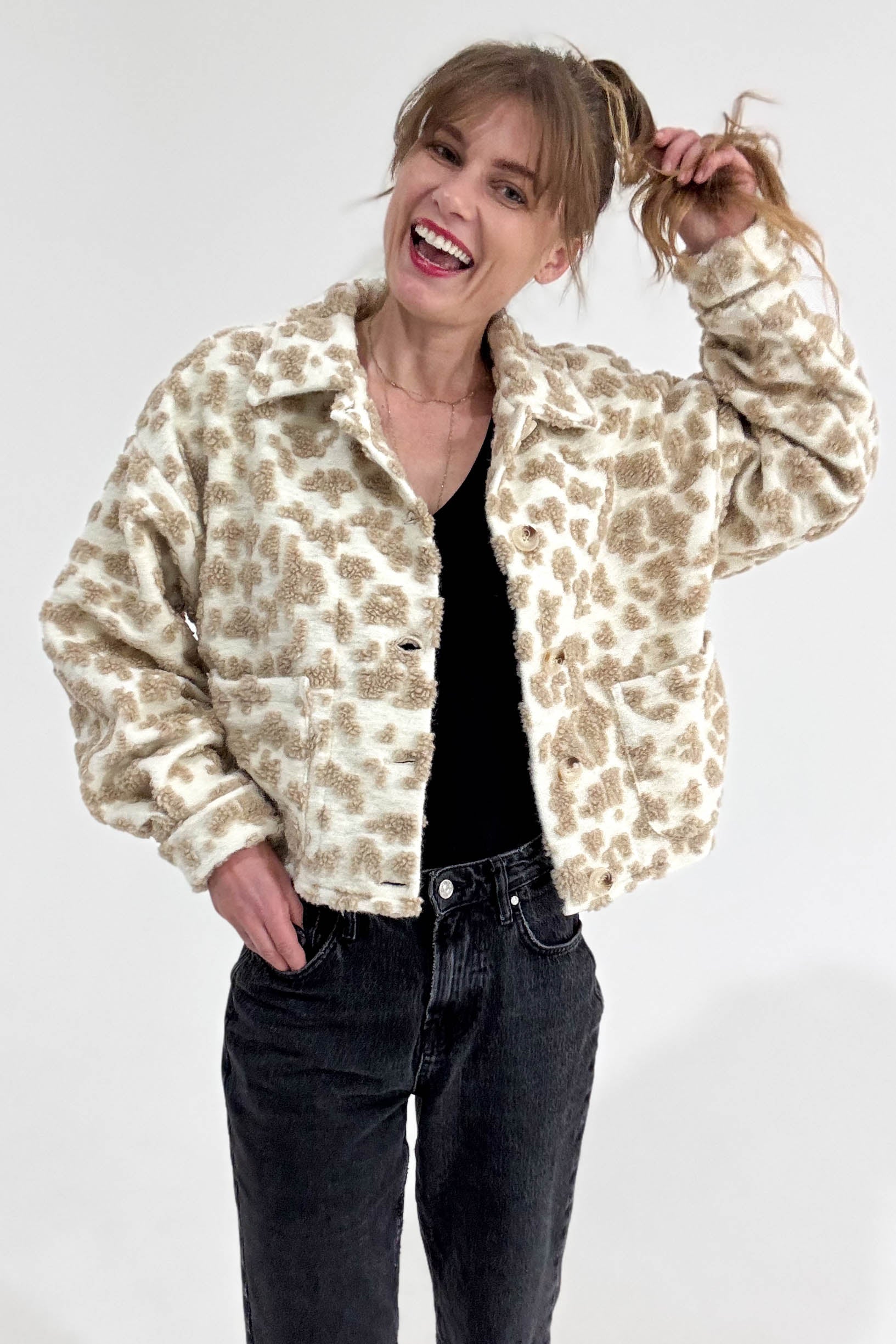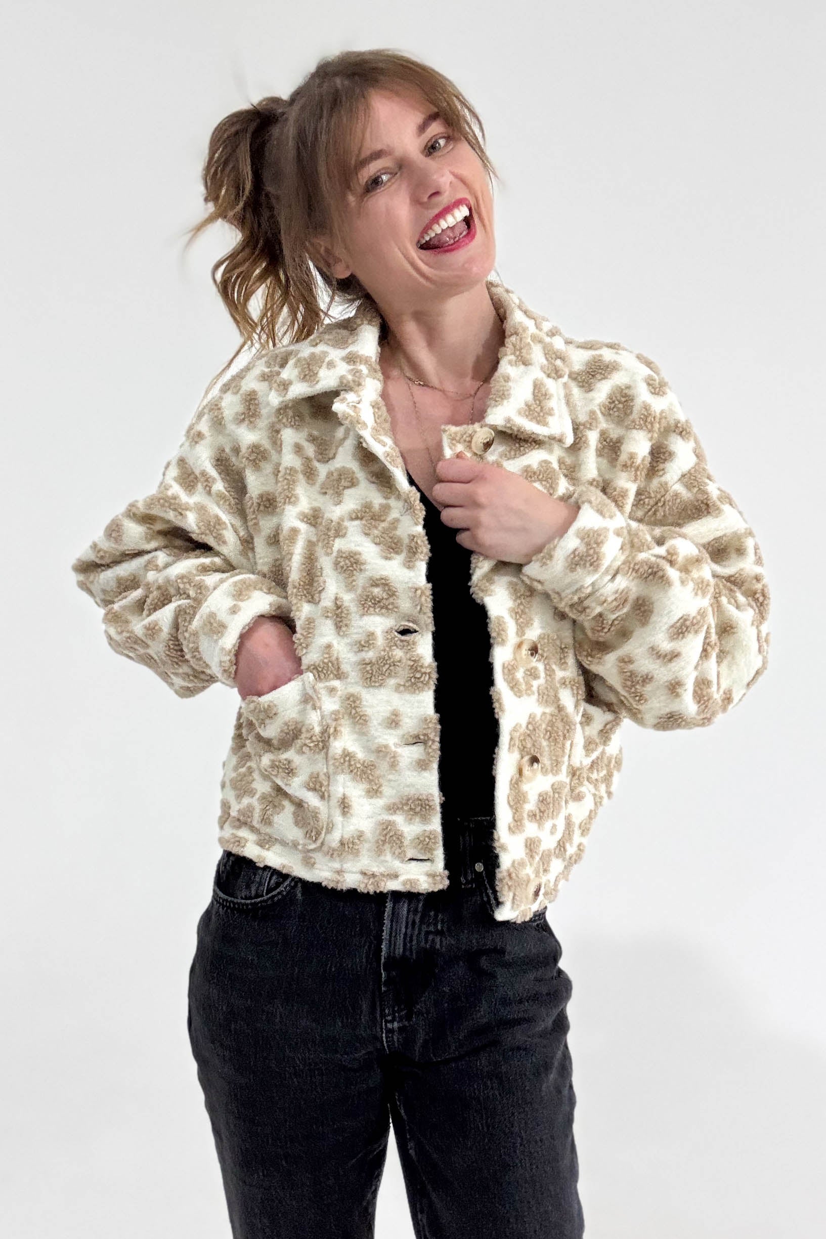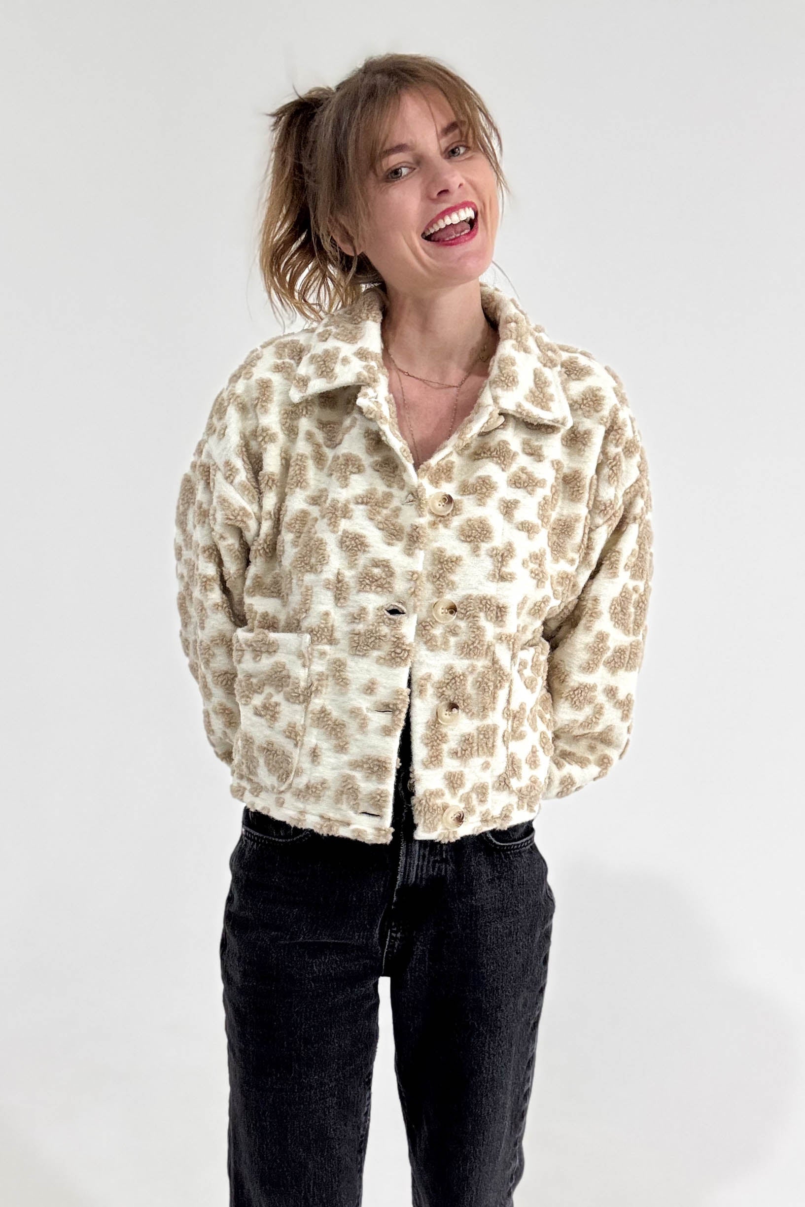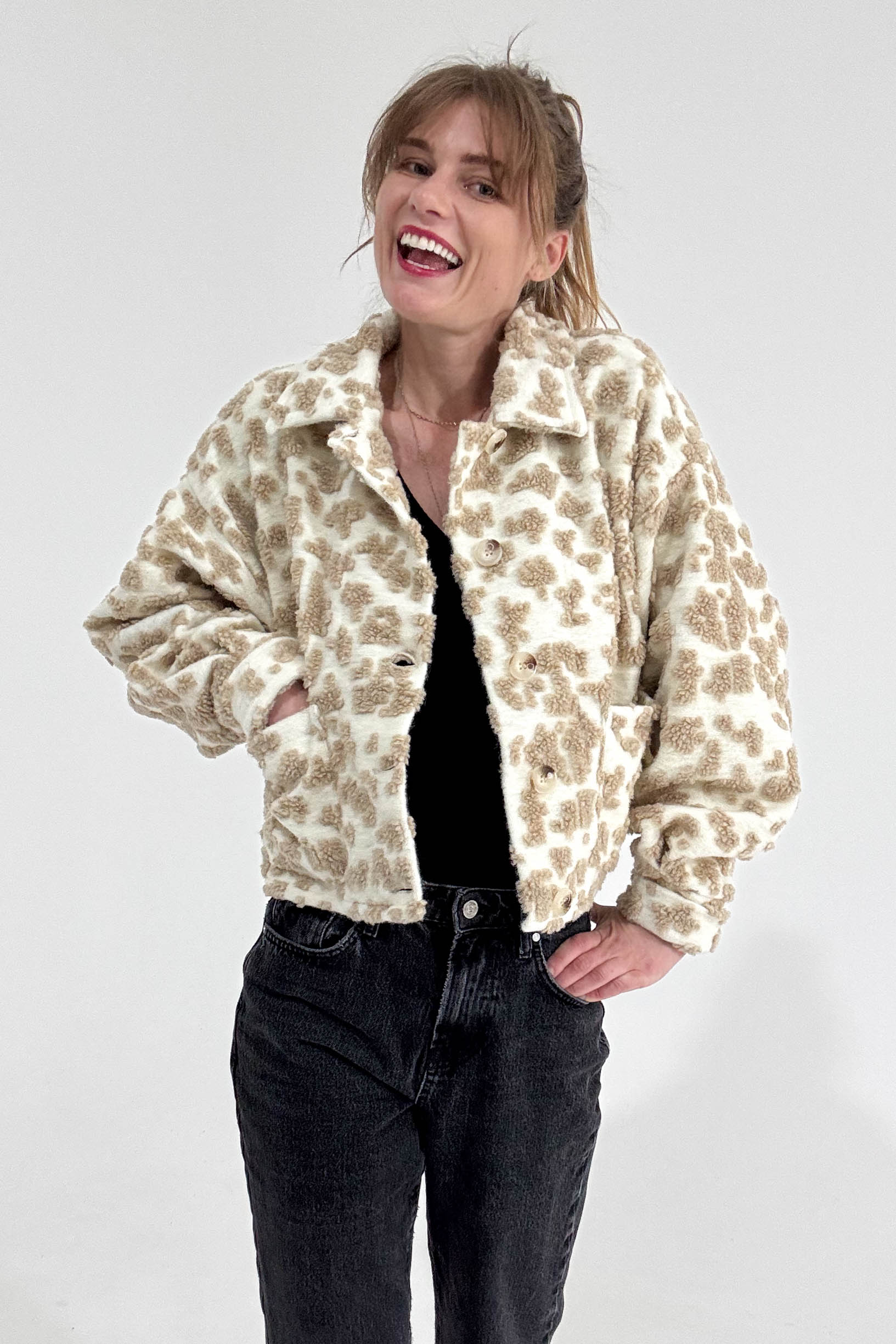Tento krémový shacket 🤍 zaujme na první pohled svým plastickým béžovým vzorem, který dodává materiálu jedinečnou strukturu a luxusní vzhled. Je ušitý z měkké a příjemné tkaniny s jemným chloupkem, která je hřejivá, hebká na dotek a zároveň dostatečně odolná pro každodenní nošení.