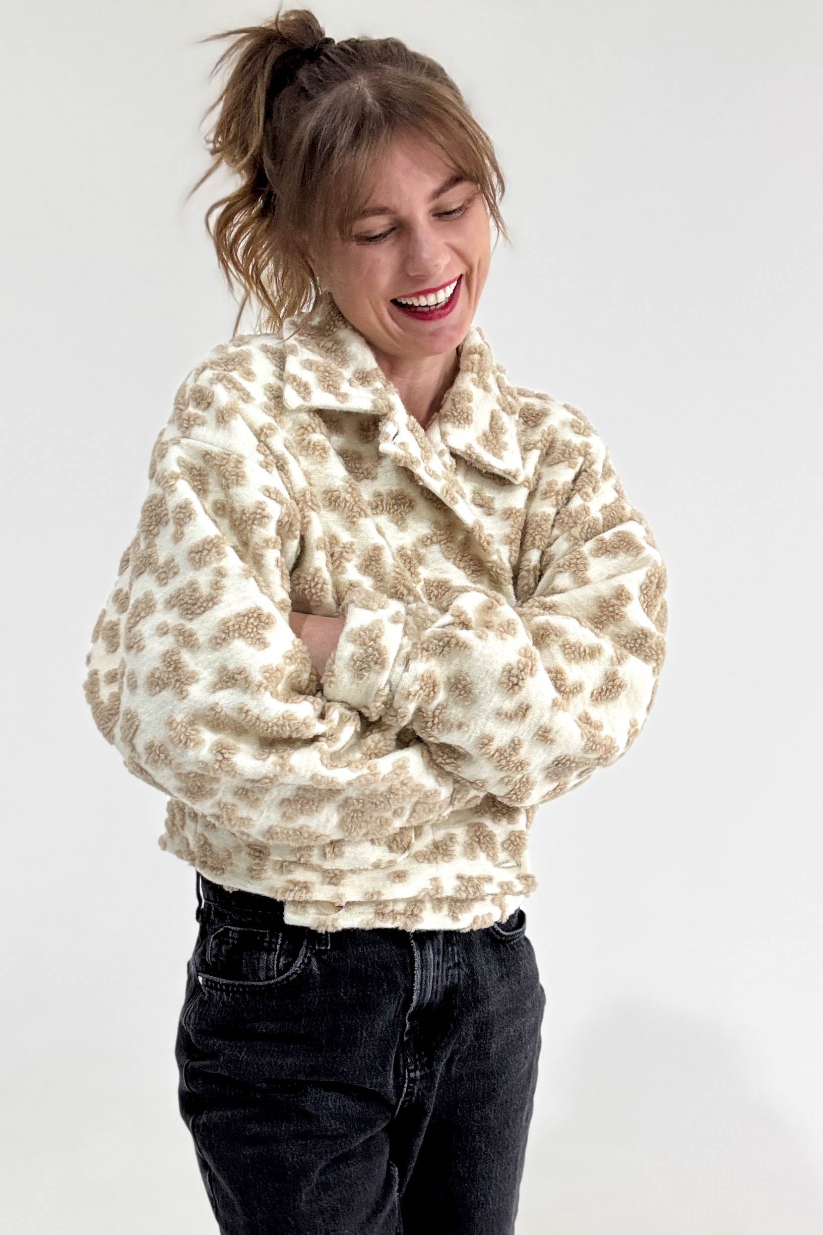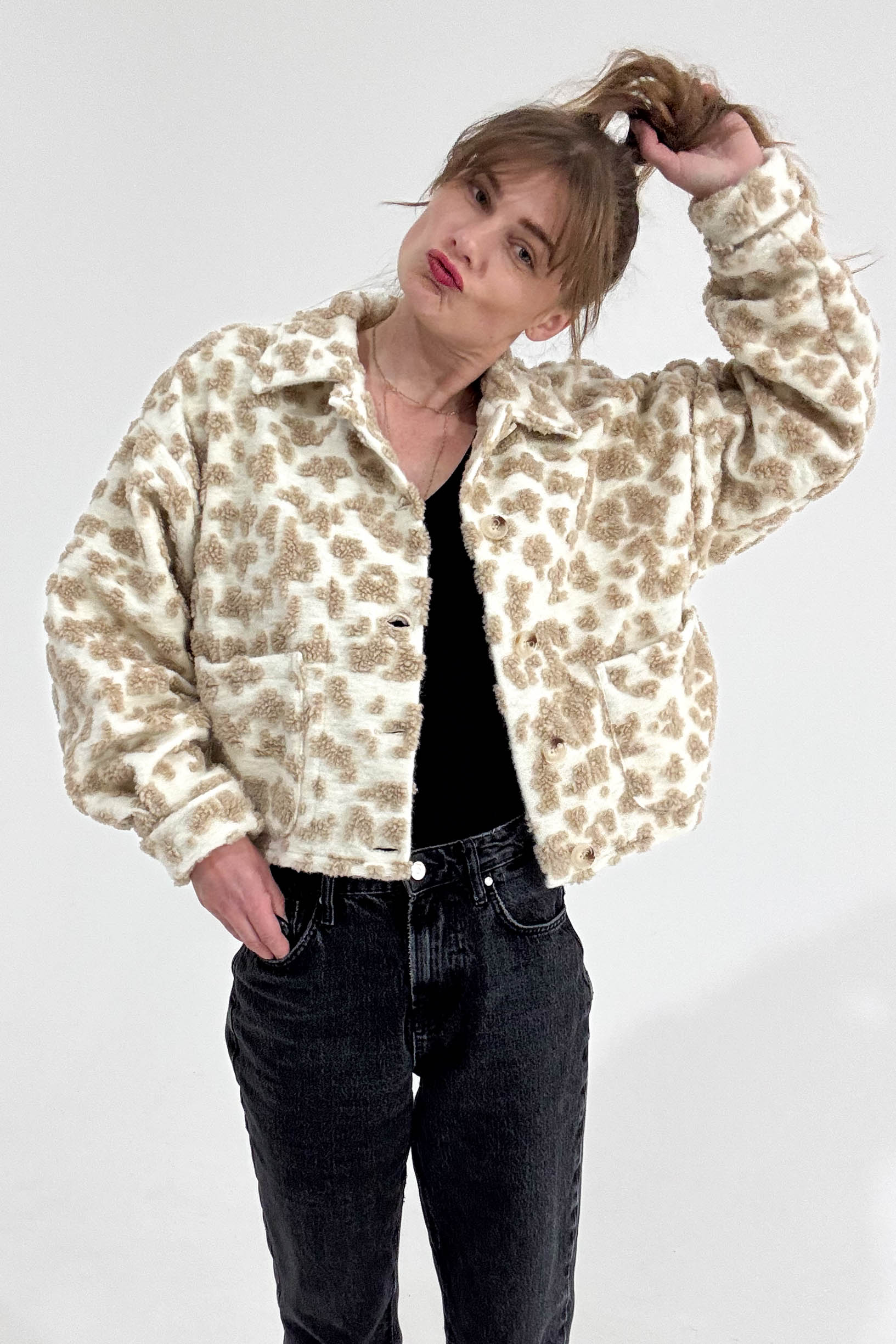 Originální krémový shacket s plastickým béžovým vzorem 🤍, který spojuje pohodlí, hřejivost a styl – stane se nepřehlédnutelným kouskem vašeho šatníku.