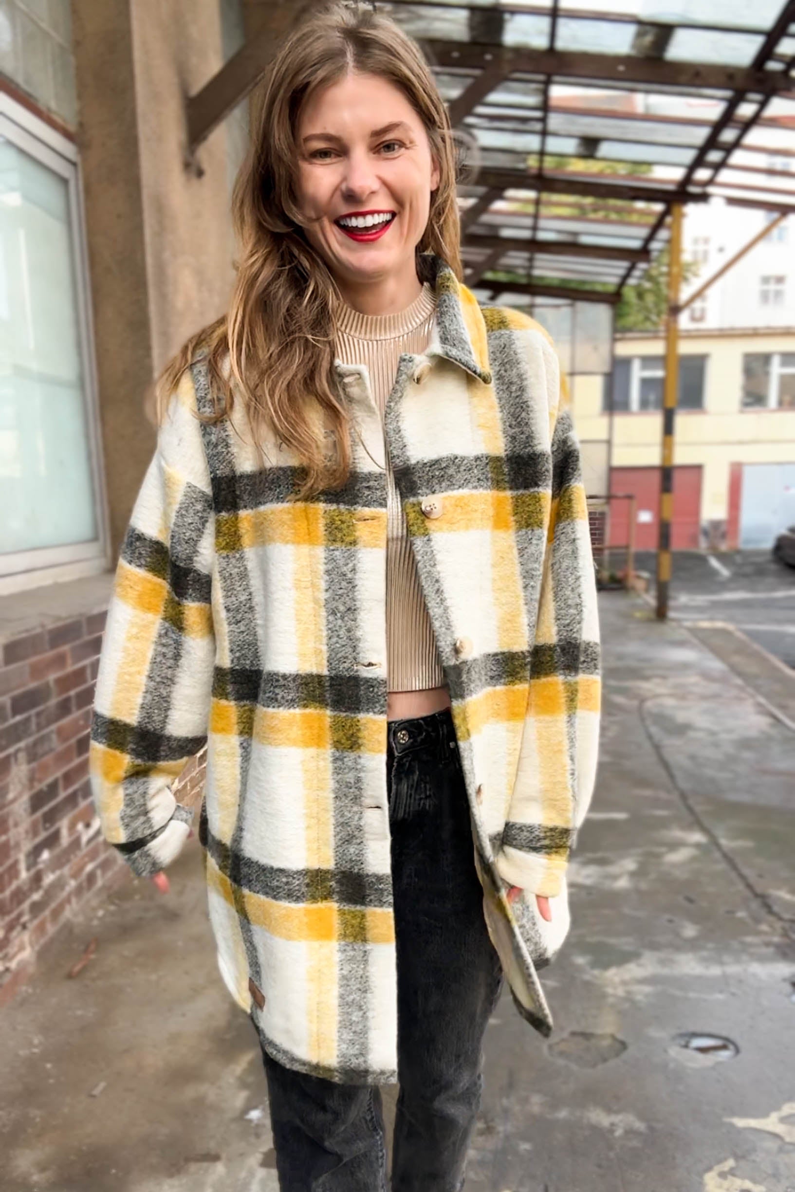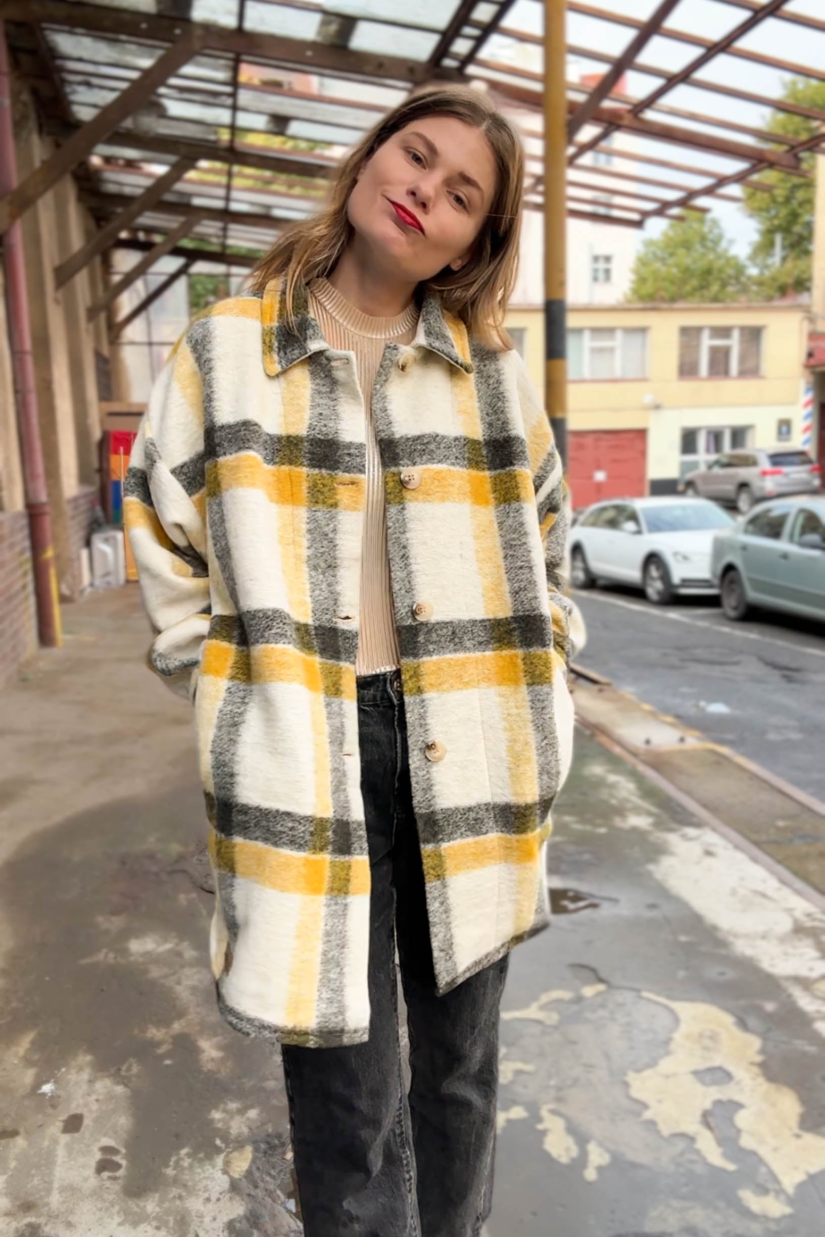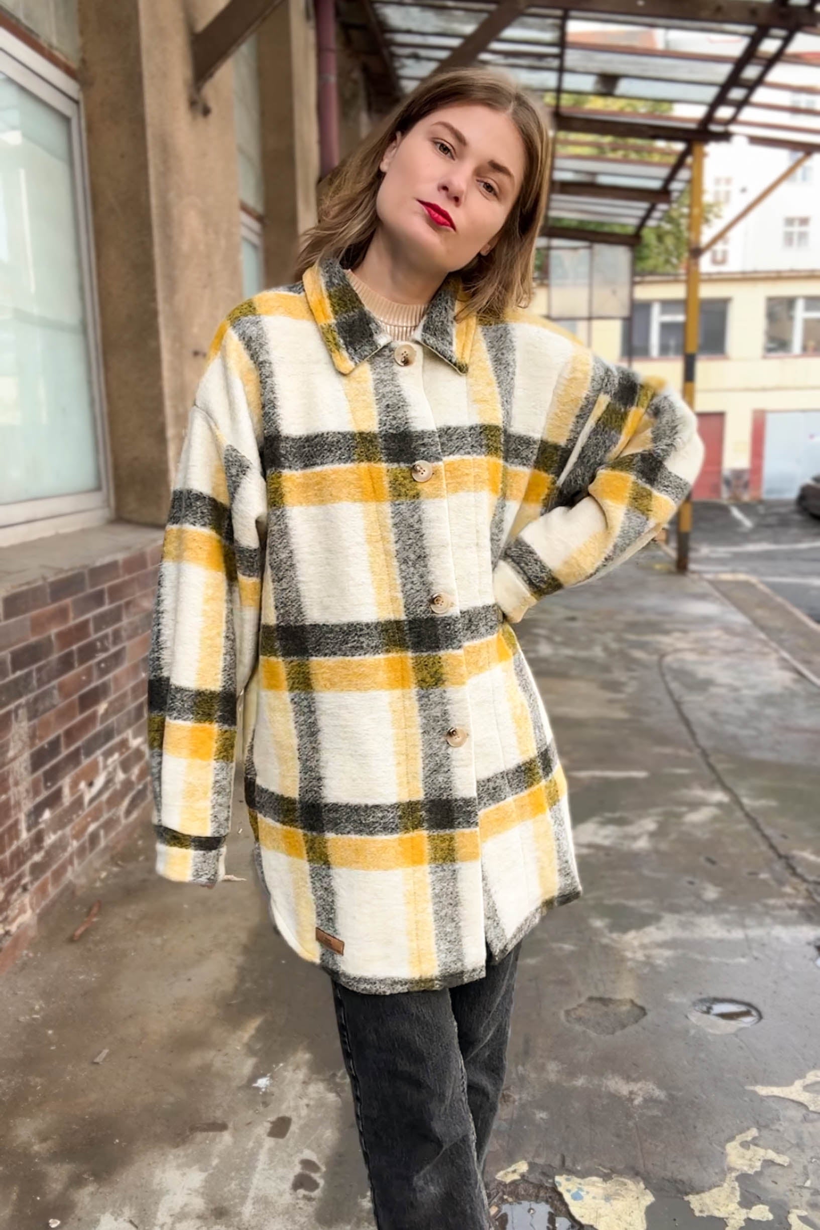 ✨ Shacket Slunečnice je kousek, který vám okamžitě rozzáří šatník i náladu. 🌻 Jeho hřejivá kostkovaná kombinace žluté, šedé a krémové působí optimisticky a originálně – přesně tak, abyste v něm zazářila v každé sezóně. 💛 Praktický střih, kapsy a pohodlný materiál z něj dělají ideální volbu na každý den, kdy chcete vypadat stylově a zároveň se cítit v teple a pohodlí.