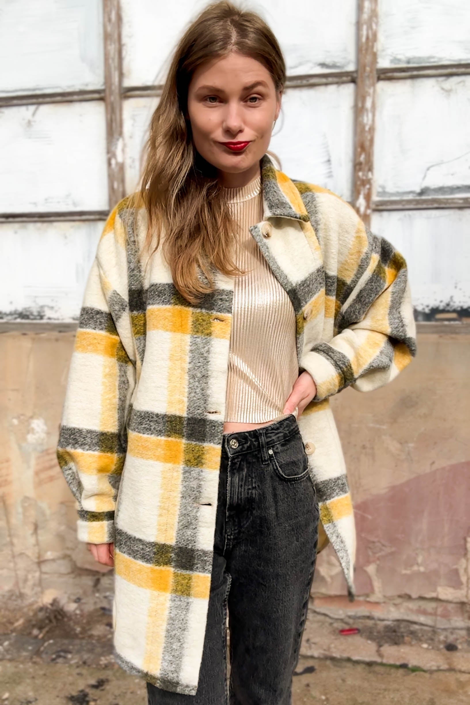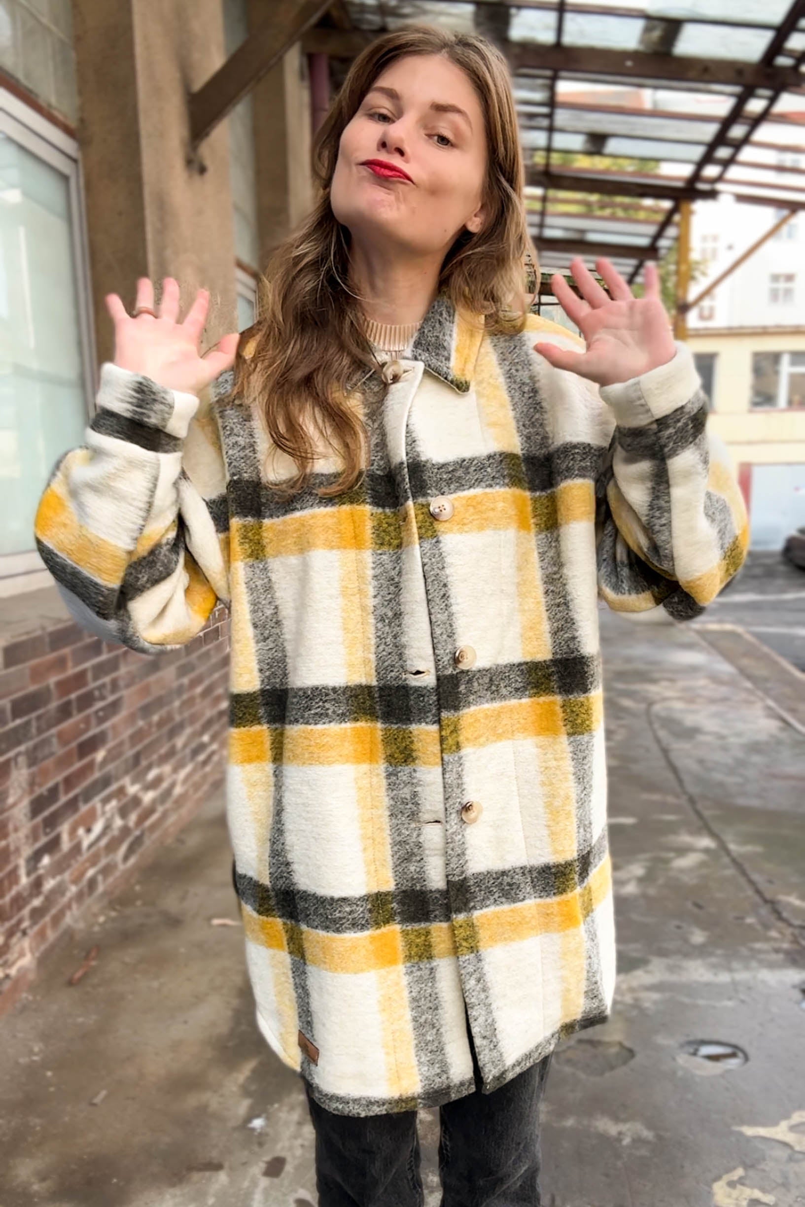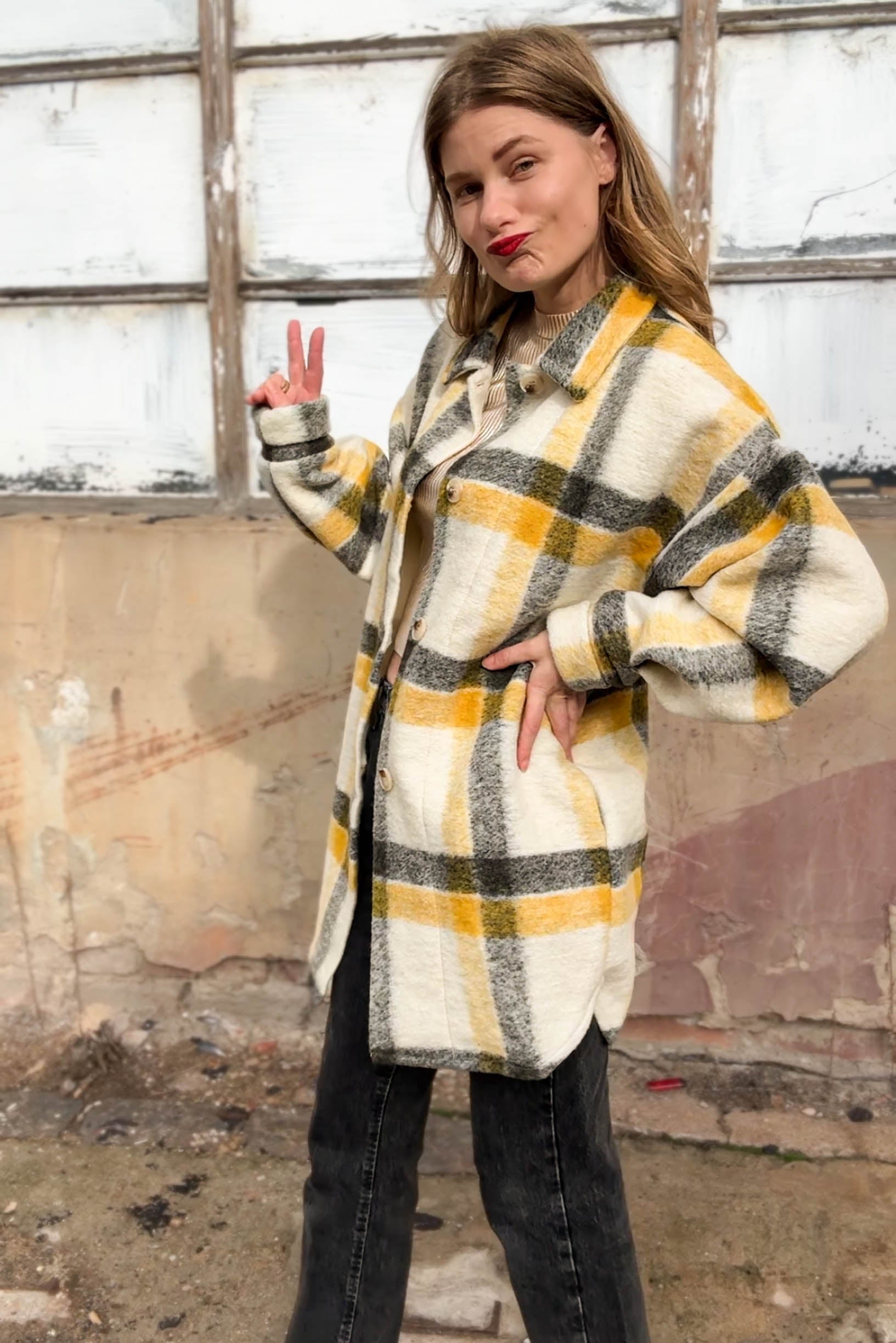 ✨ Shacket Slunečnice je kousek, který vám okamžitě rozzáří šatník i náladu. 🌻 Jeho hřejivá kostkovaná kombinace žluté, šedé a krémové působí optimisticky a originálně – přesně tak, abyste v něm zazářila v každé sezóně. 💛 Praktický střih, kapsy a pohodlný materiál z něj dělají ideální volbu na každý den, kdy chcete vypadat stylově a zároveň se cítit v teple a pohodlí.