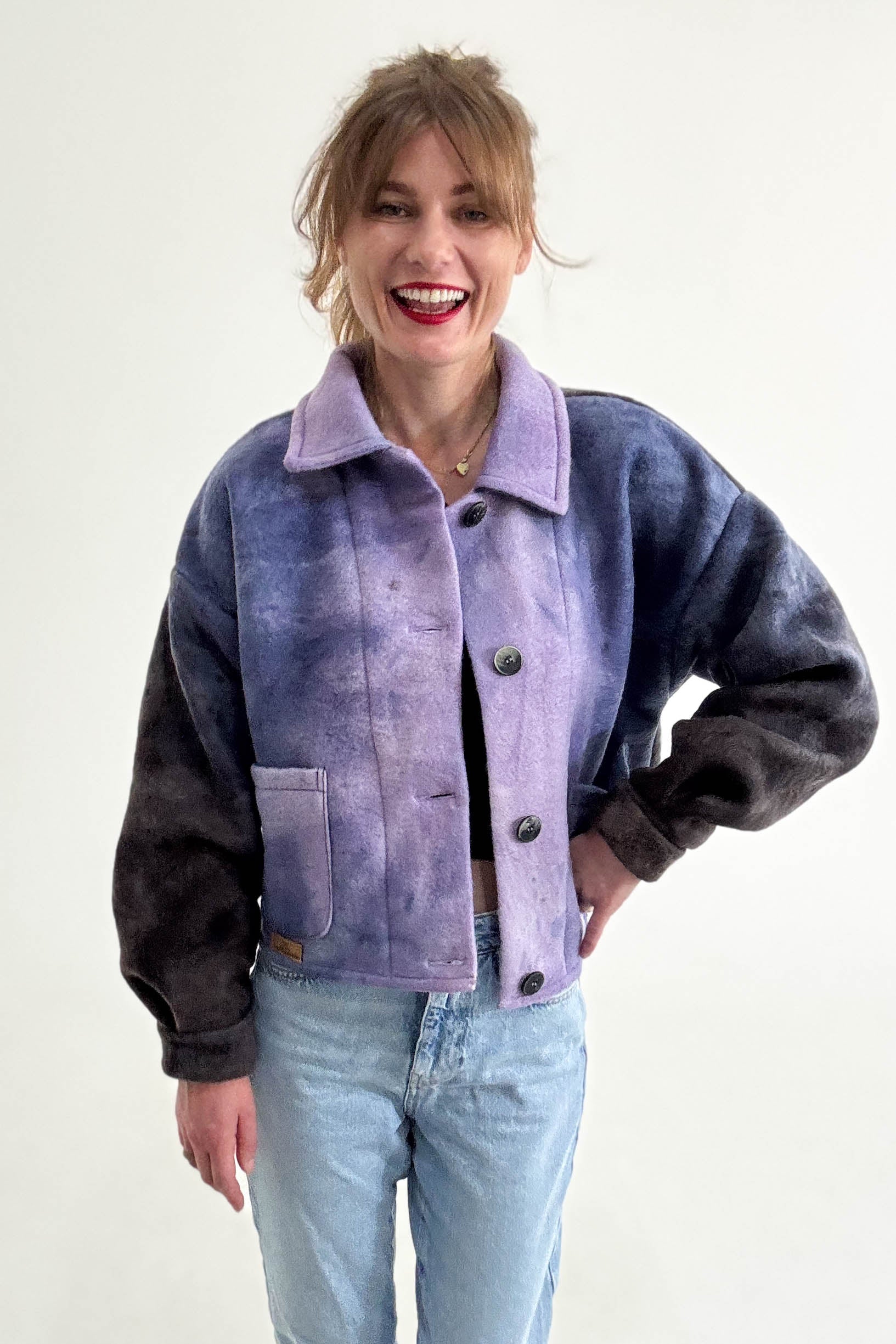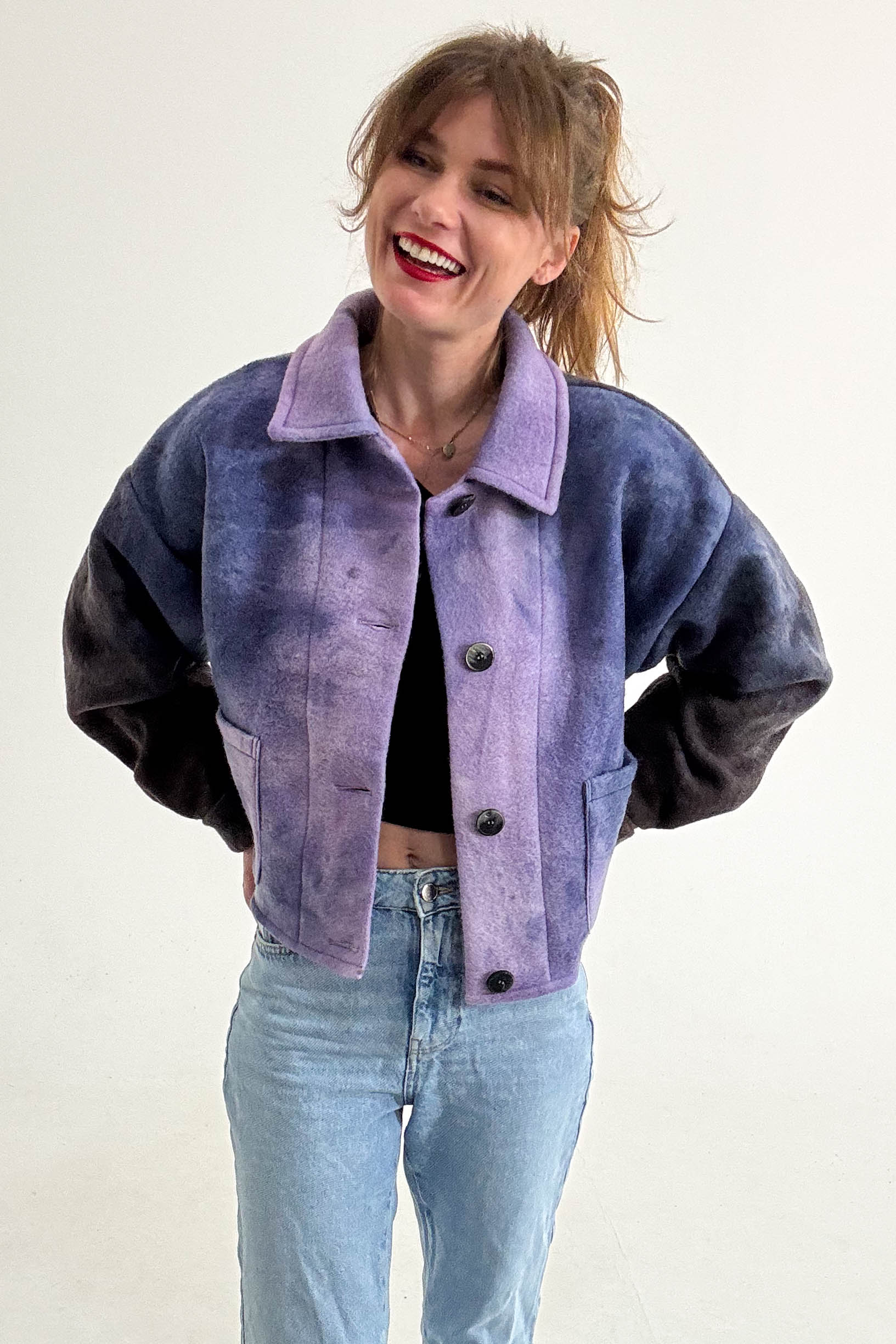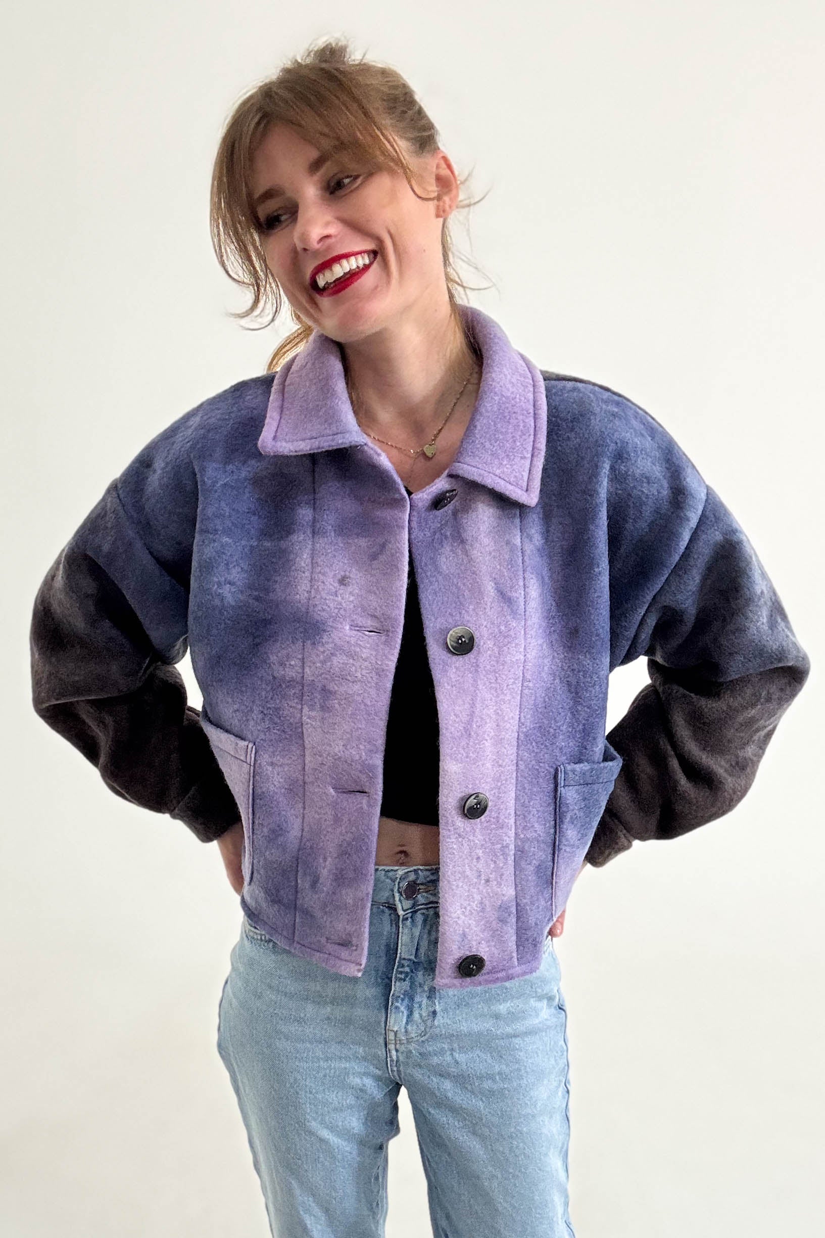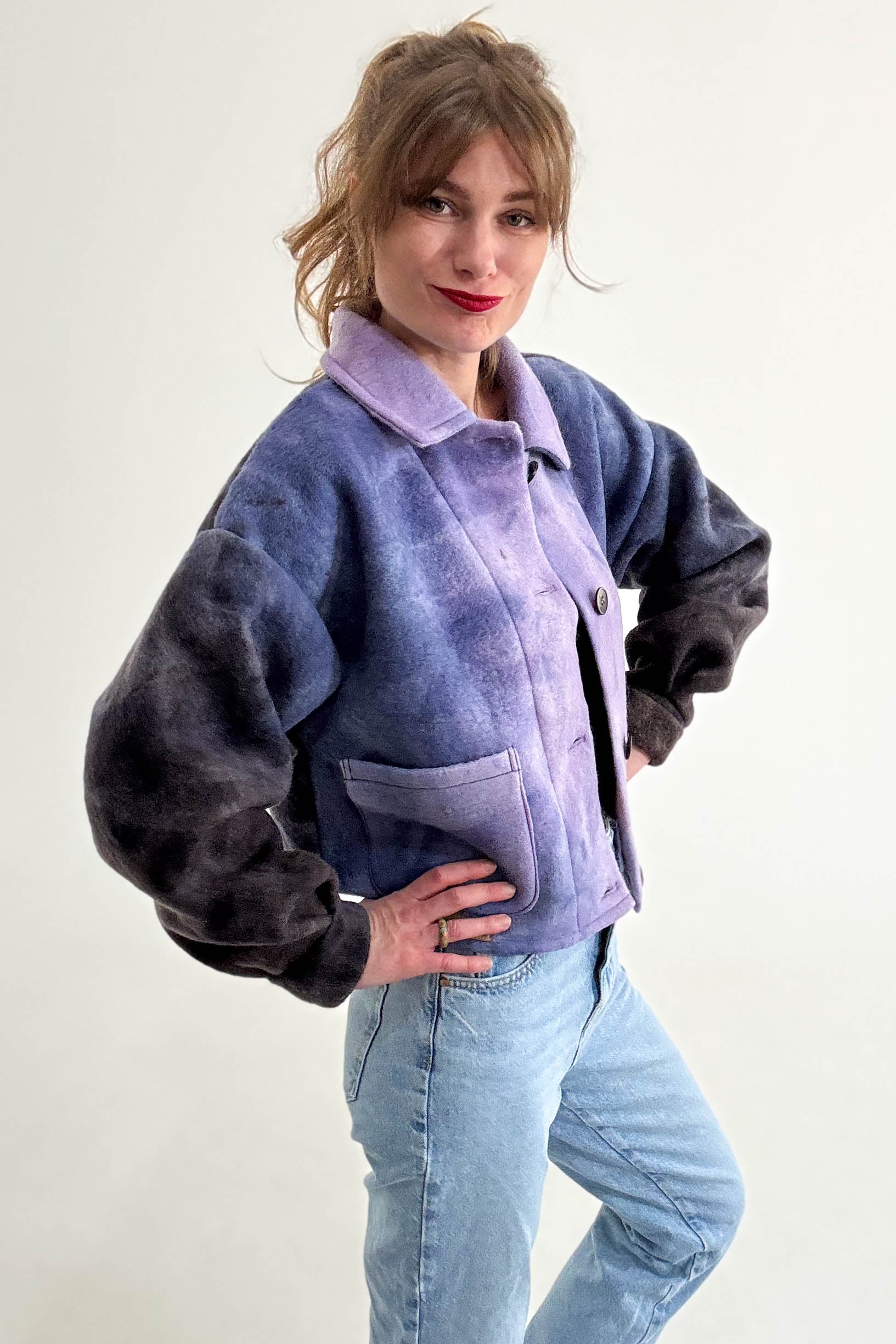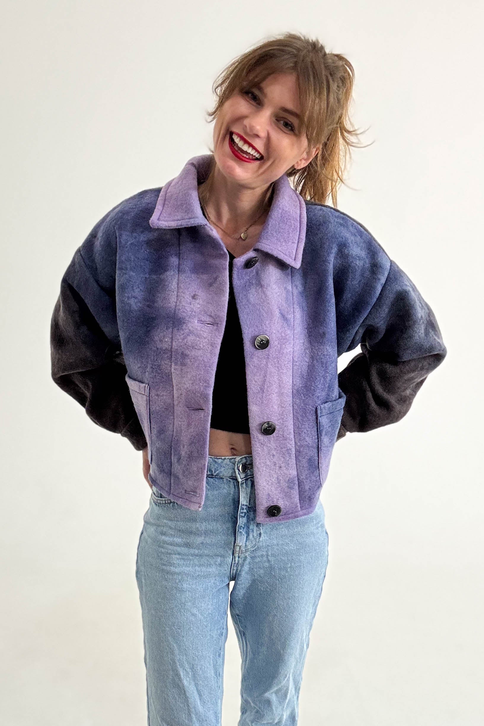 Shacket ÚNICO je kousek, který vás okamžitě zaujme svým originálním batikovaným přechodem v tónech hnědé, šedé, fialové a modré 🌌. Ušitý z kvalitní vlněné kabátoviny, nabídne hřejivost, styl a výjimečnost, kterou nikde jinde nenajdete. 🧥💫