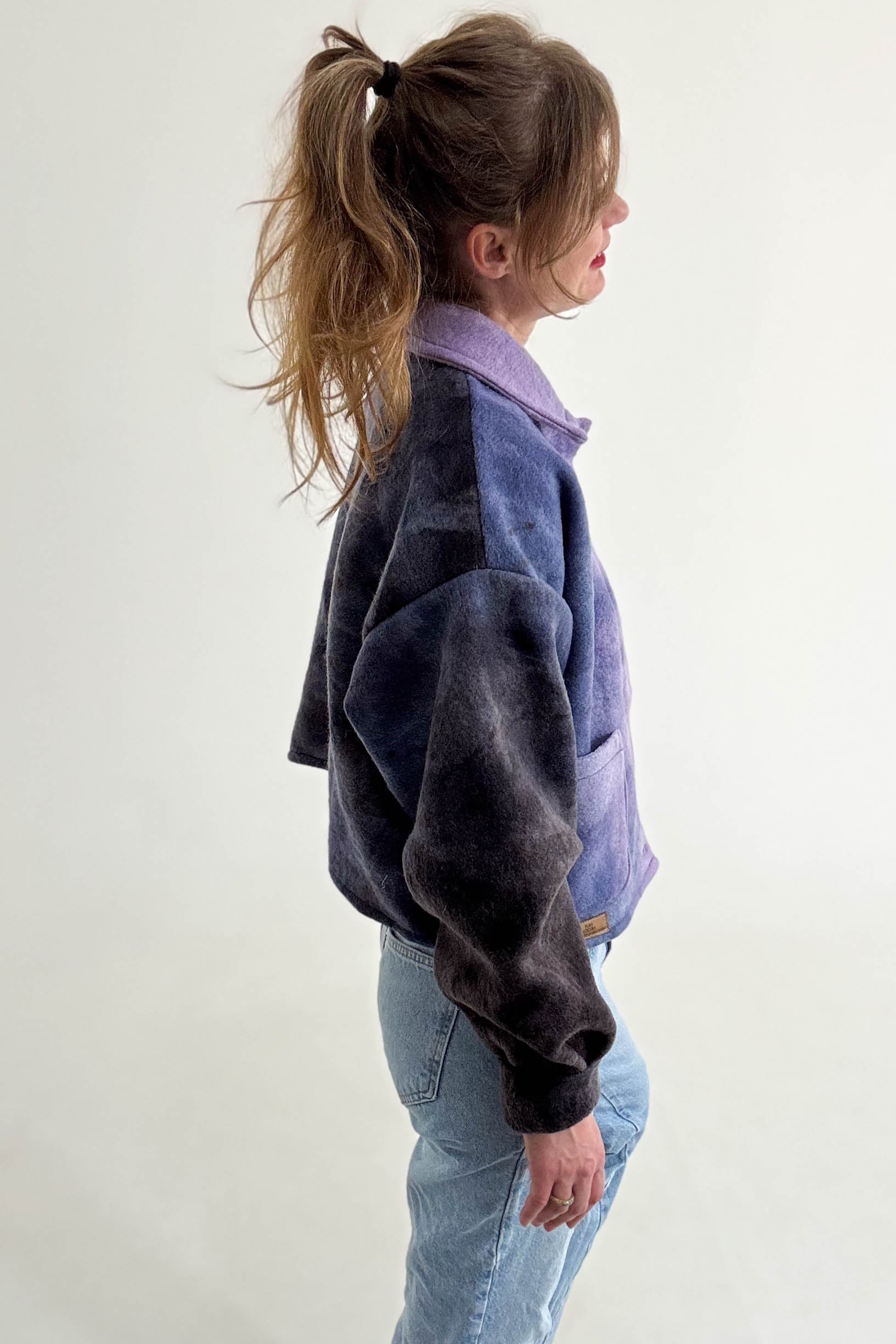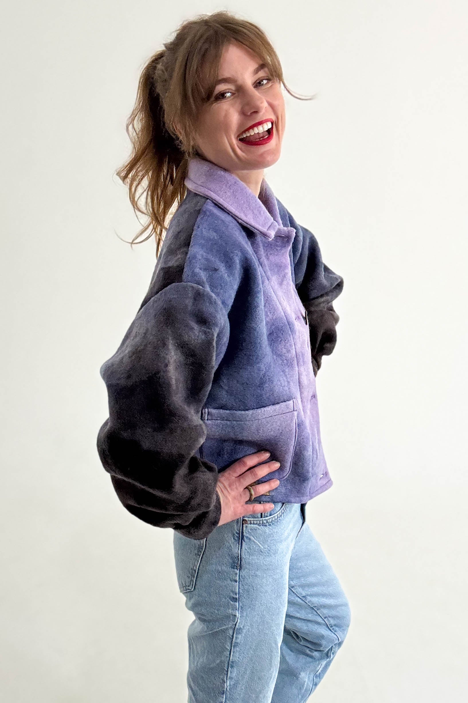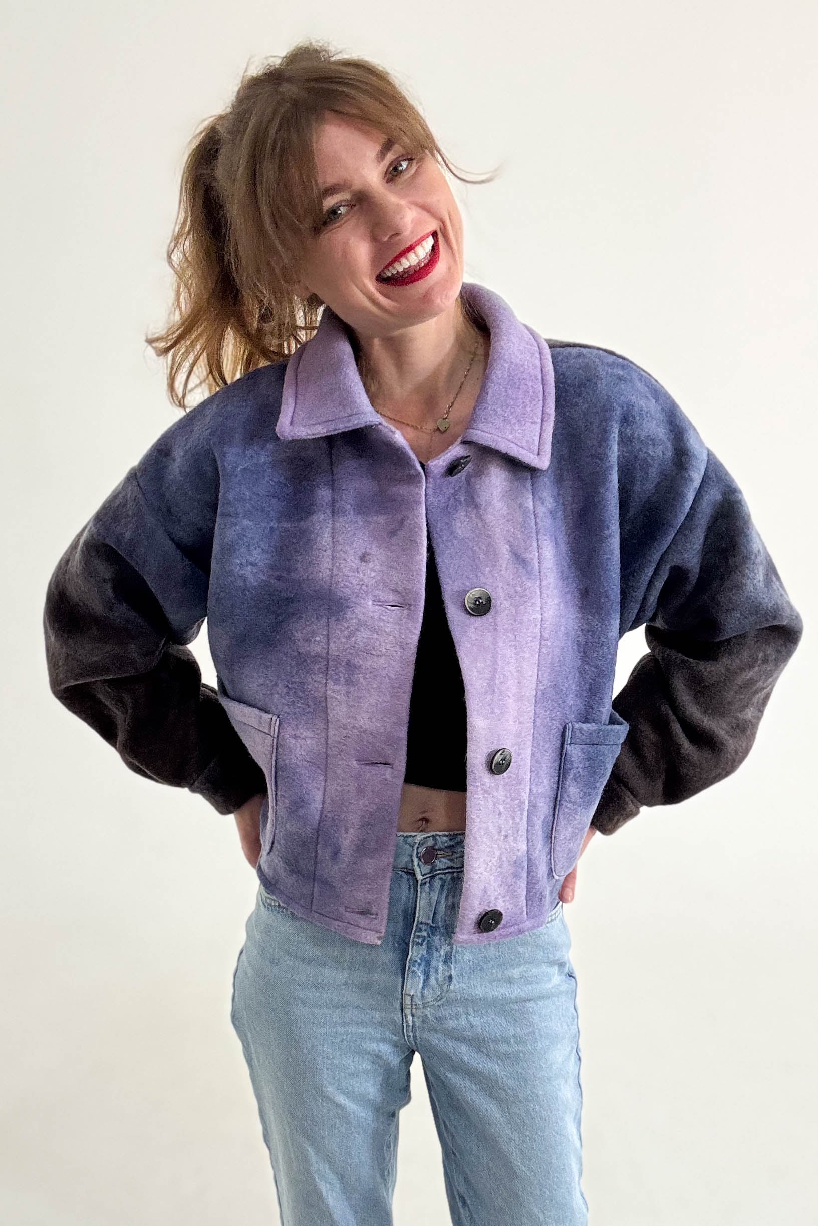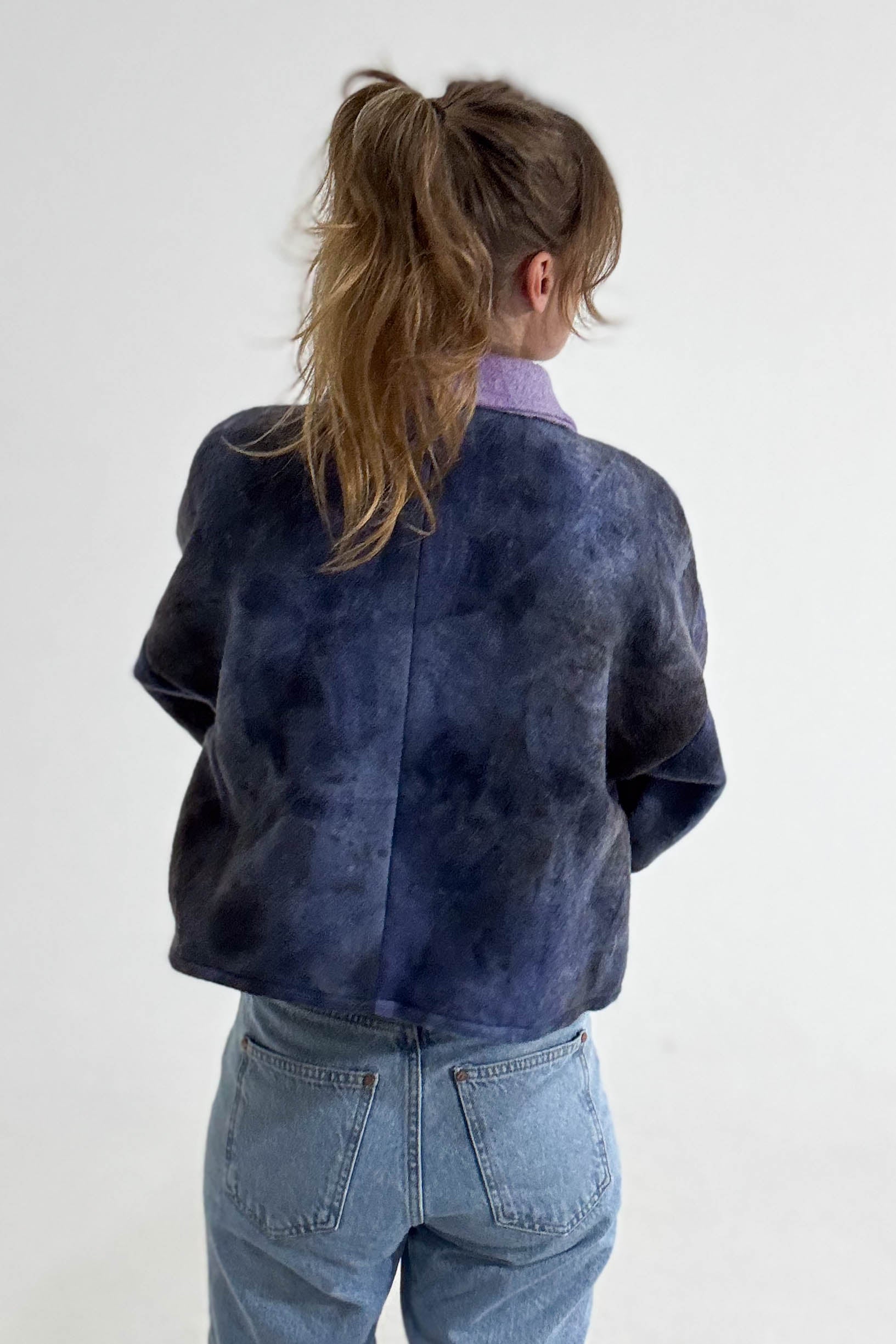 Shacket ÚNICO je kousek, který vás okamžitě zaujme svým originálním batikovaným přechodem v tónech hnědé, šedé, fialové a modré 🌌. Ušitý z kvalitní vlněné kabátoviny, nabídne hřejivost, styl a výjimečnost, kterou nikde jinde nenajdete. 🧥💫
