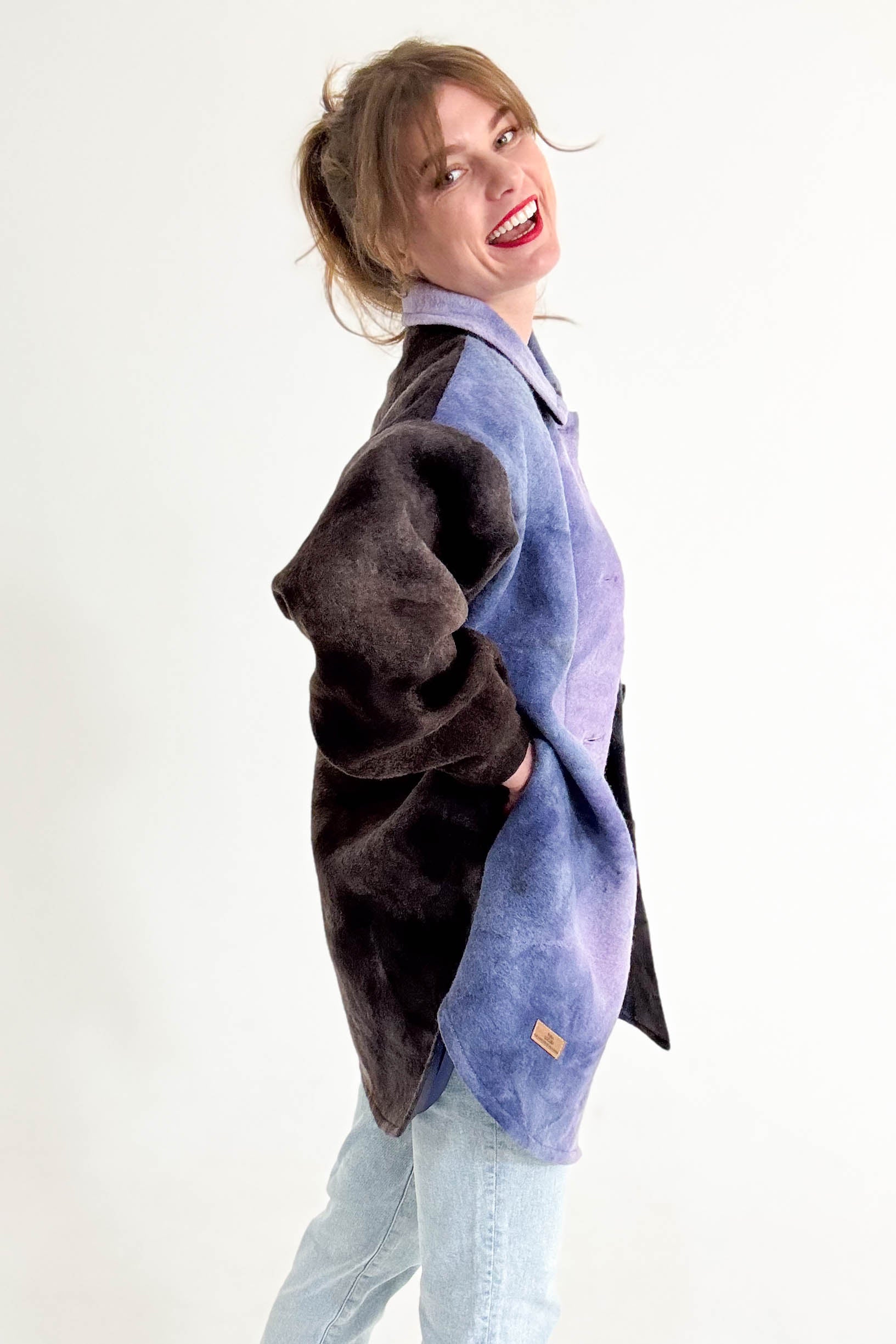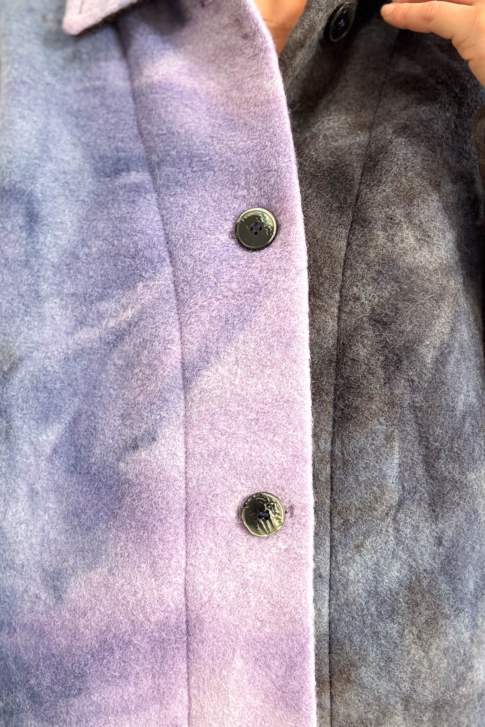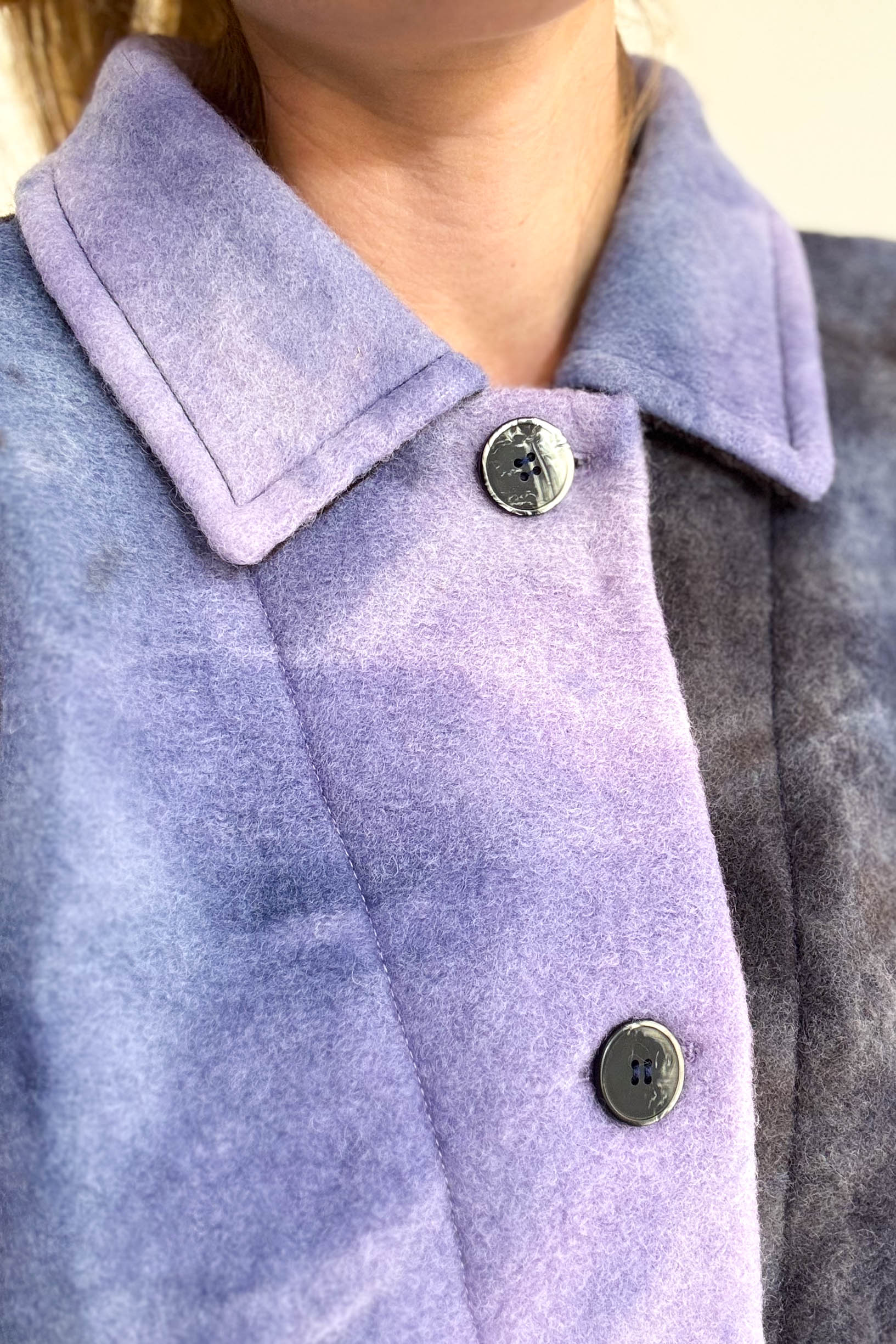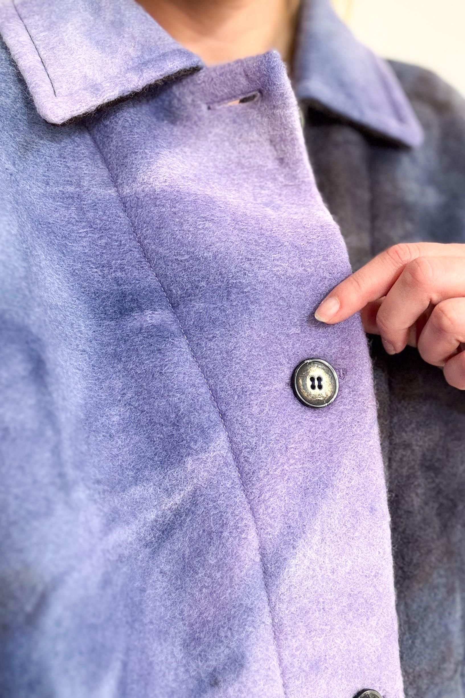 Shacket ÚNICO je kousek, který vás okamžitě zaujme svým originálním batikovaným přechodem v tónech hnědé, šedé, fialové a modré 🌌. Ušitý z kvalitní vlněné kabátoviny, nabídne hřejivost, styl a výjimečnost, kterou nikde jinde nenajdete. 🧥💫