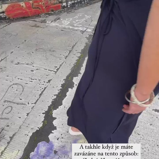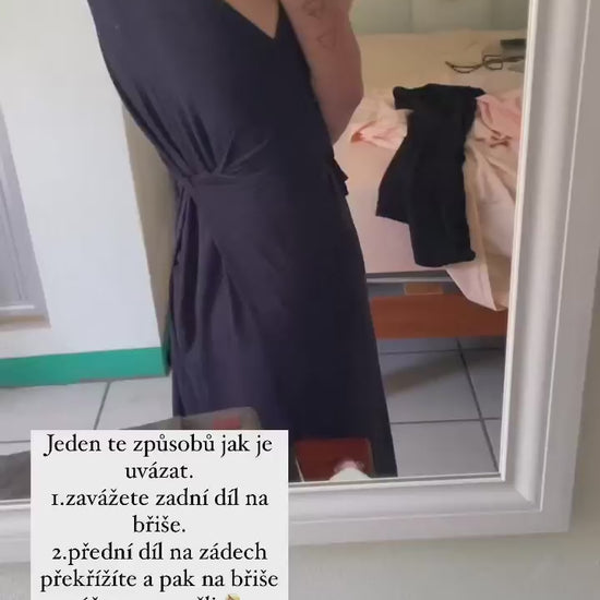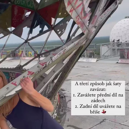 3️⃣ Zadní díl uvážete na břiše, přední díl překřížíte na zádech a uvážete - efekt šatů s páskem